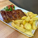 Chifla, sos secret, salata verde, ceapa rosie, rosie, carne. cheddar, jalapenos, bacon prajit si sos samurai